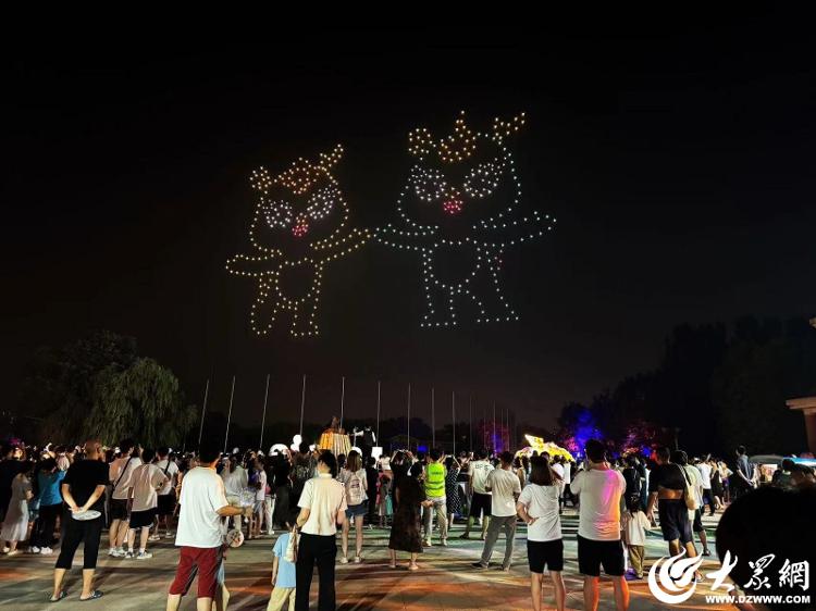 记者20时到达活动现场时,“人海”已将花仙谷内各通道、各景点挤得水泄不通。21时,600架闪烁着七彩灯光的无人机伴随着动感的音乐,从迷人的花仙谷光影世界腾空而起,井然有序地变换阵形。在展现好客的东营人民“沿着黄河遇见海、我在东营等您来”巨幅的诚挚邀请中开启,依次展现了兵圣孙武、东东营营、提油机以及东营雪莲大剧院造型。同时展示了鲸鱼跃出海面、龙凤翱翔天际、机器猫活泼灵动的卡通形象。表演约20分钟,舞出了一场流光溢彩、动感纷呈的视觉盛宴。