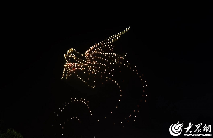 东营市花仙谷景区600架无人机炫技表演点亮东营夜空