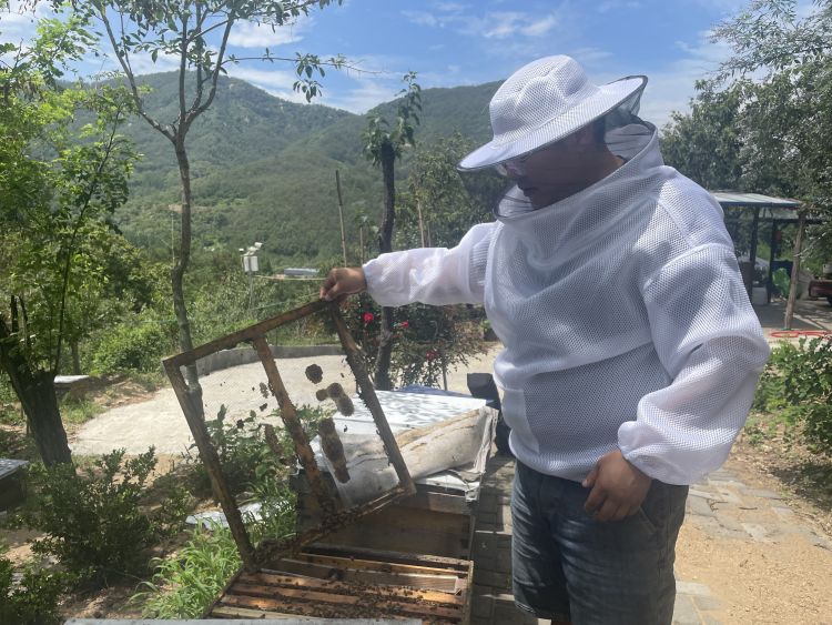这位养蜂人,很忙碌!用他自己的话,“我为家乡的‘甜蜜事业’出力,干劲十足!”