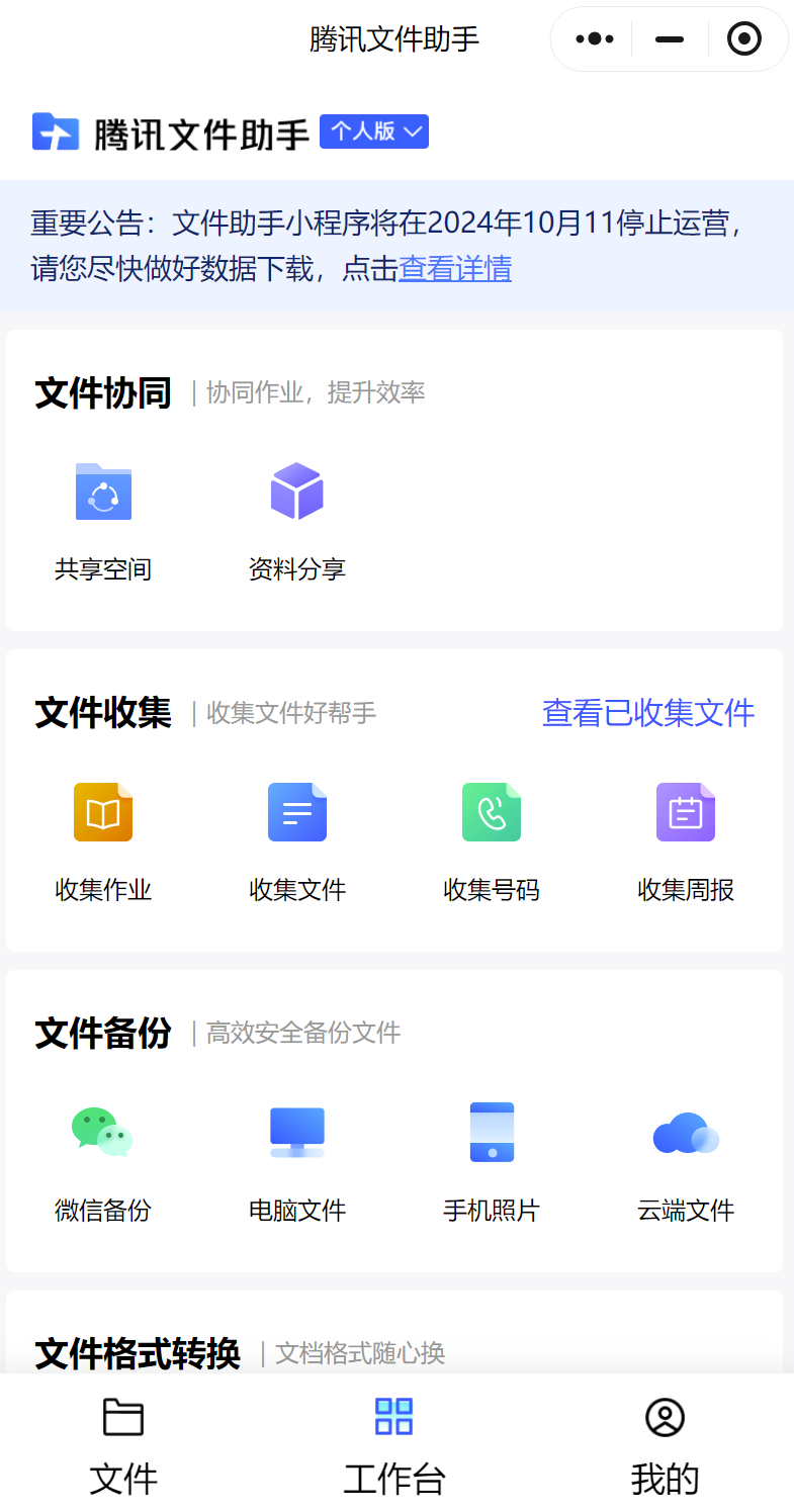 昨日(5日),腾讯文件助手突然发布公告,文件助手小程序及web页面将在2024年10月11日停止运营。