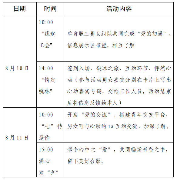 为满足全县青年人才婚恋交友需求,推动解决青年人才婚恋难题,擦亮“工会有约”职工婚恋服务品牌,8月10日、11日,利津县总工会举办“会聚良缘 ‘津’生有约”七夕相亲大会。
