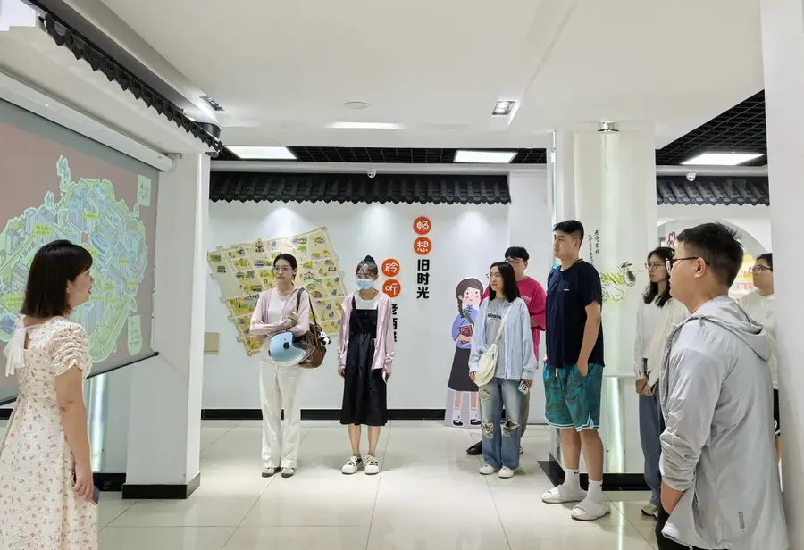 活动分为城市感知和政策宣介两个环节。城市感知环节在大观园街道睦和苑社区开展,高校学子在社区工作人员的引导下,参观了社区建设,感受了“开风气之先 创至善之业”的商埠精神。