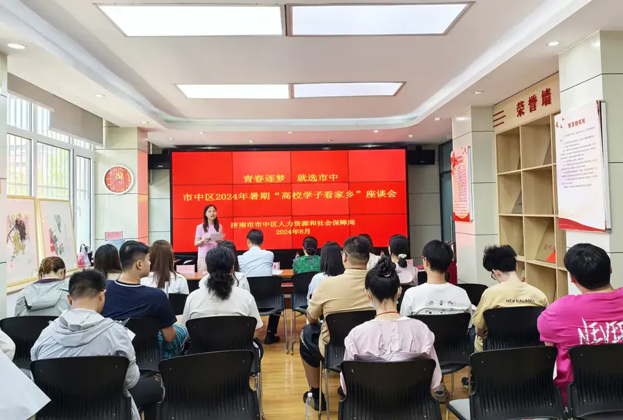 为搭建在外学子与家乡常态化联系的实践桥梁,感知市中区就业创业环境,吸引更多青年人才聚济留济。8月7日上午,济南市市中区人社局组织开展2024年暑期“高校学子看家乡”活动,活动以“青春逐梦,就选市中”为主题,组织市中区户籍高校学子20余人参加,让高校学子近距离感受家乡的发展变化和引才的满满诚意。
