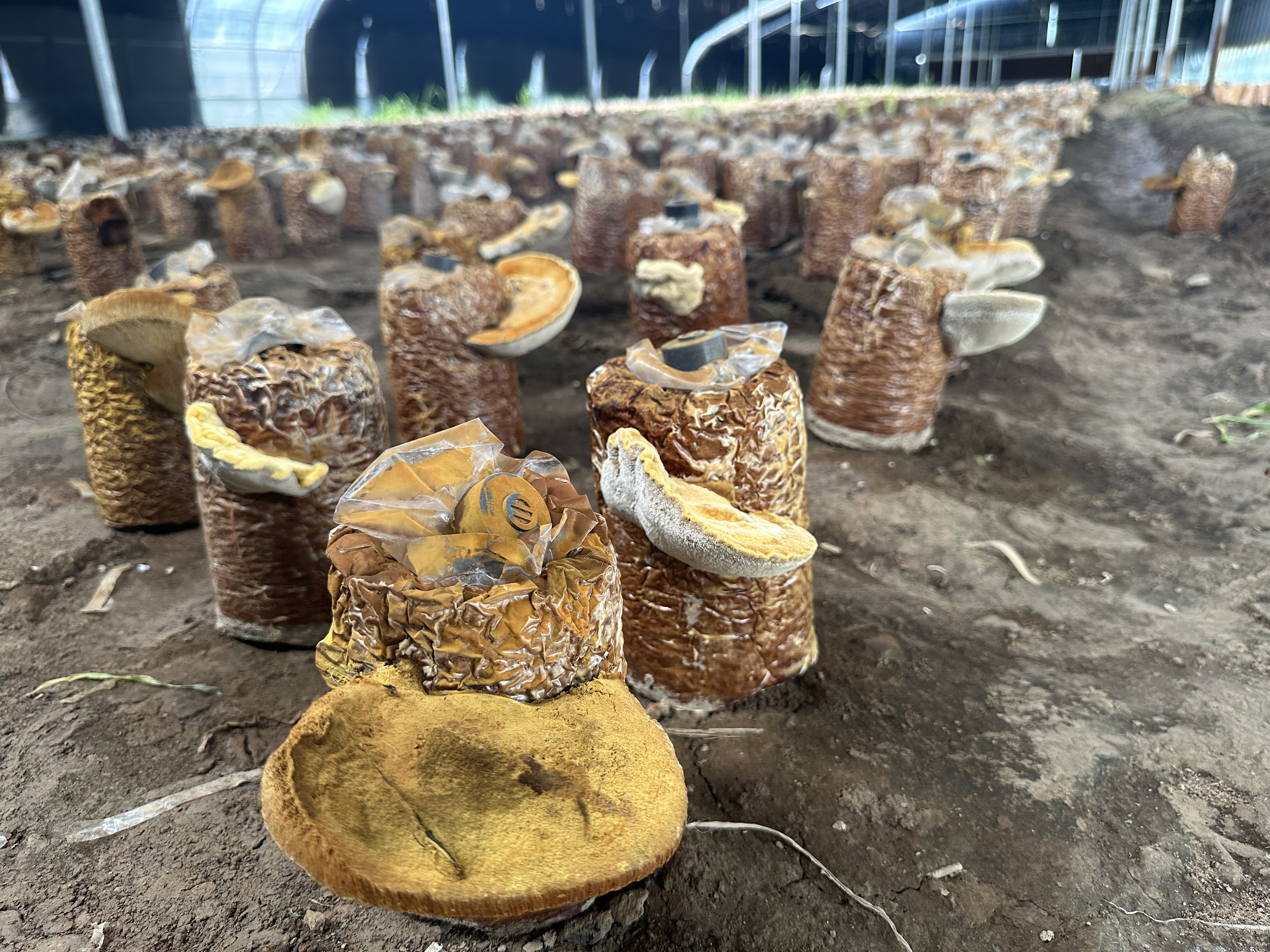 刚生产出的桑黄菌棒