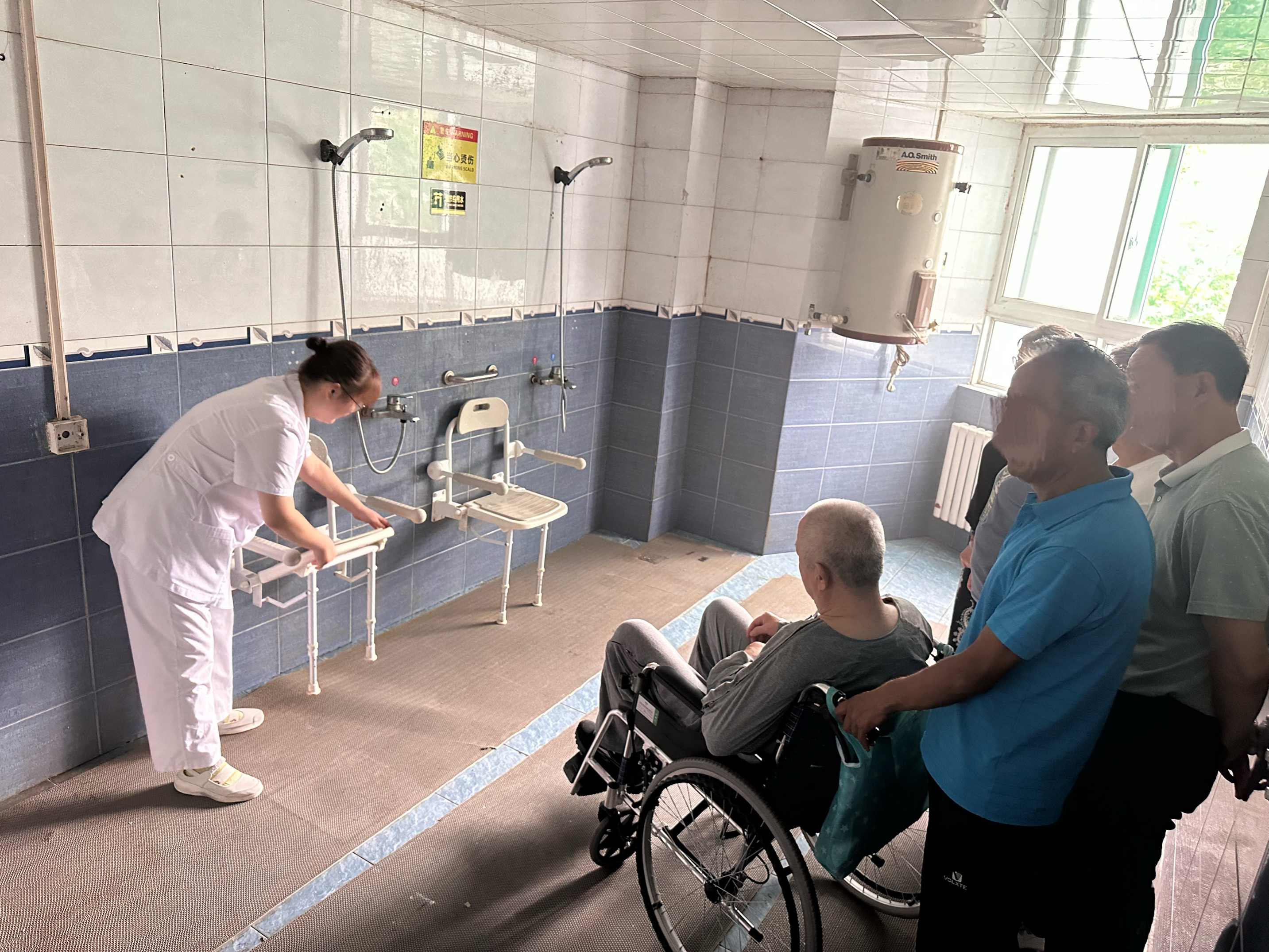 前期医院通过调研发现,中西医结合科患者住院时间较长,腿脚不方便的居多,尤其是到了炎热夏季,出汗黏腻不爽,为让患者和家属在医院里也能舒舒服服地洗上热水澡,医院在科室公共区域设置并改造了公共浴室。该公共浴室有别于普通的浴室,采用全方位防滑设计和无障碍设施,配备洗浴凳等助浴设施,便于行动不便的患者完成洗浴,切切实实提升了群众住院期间的舒适度。