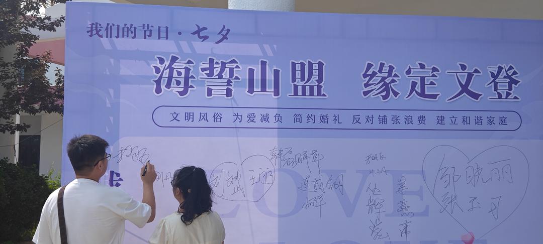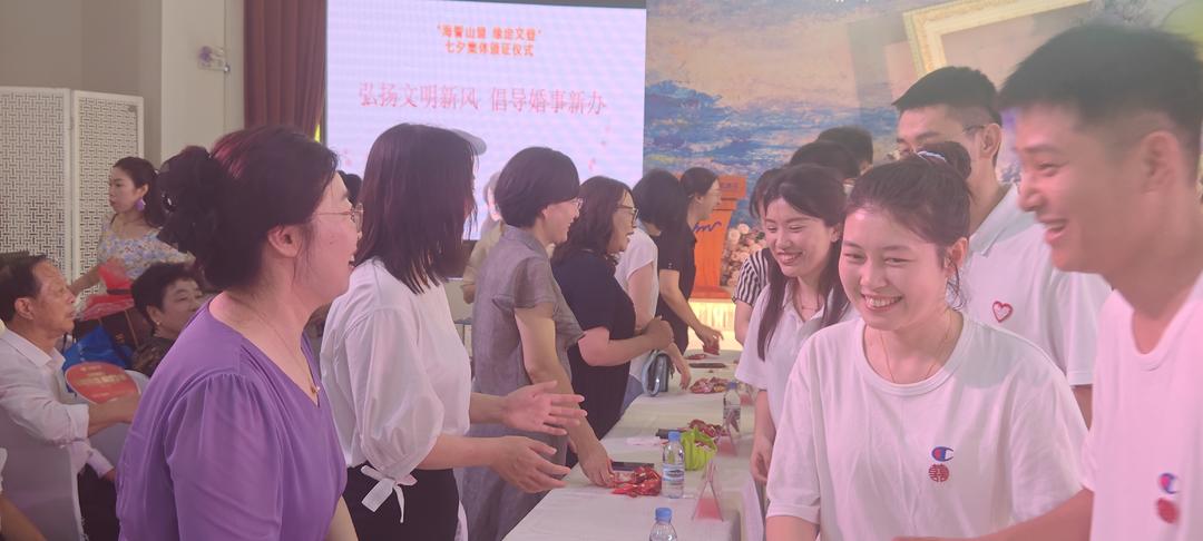 在乳山,相关部门组织在婚姻登记处等地开展了七夕婚俗宣传文明实践活动,还举办了单身青年职工交友联谊文明实践活动,向青年职工宣传正确婚恋观,鼓励体现新时代新风尚的婚嫁礼仪礼节,深入推进移风易俗。