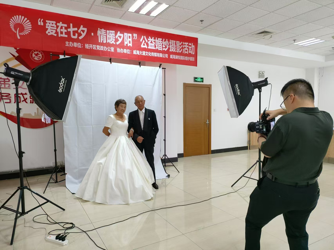 经开区新时代文明实践中心组织为辖区60岁及以上的老年夫妻免费拍摄婚纱照,帮老人们圆一个“婚纱梦”。伴随相机的咔嚓声,幸福的笑容被定格,见证着老人们相伴一生、患难与共的“不老”爱情。