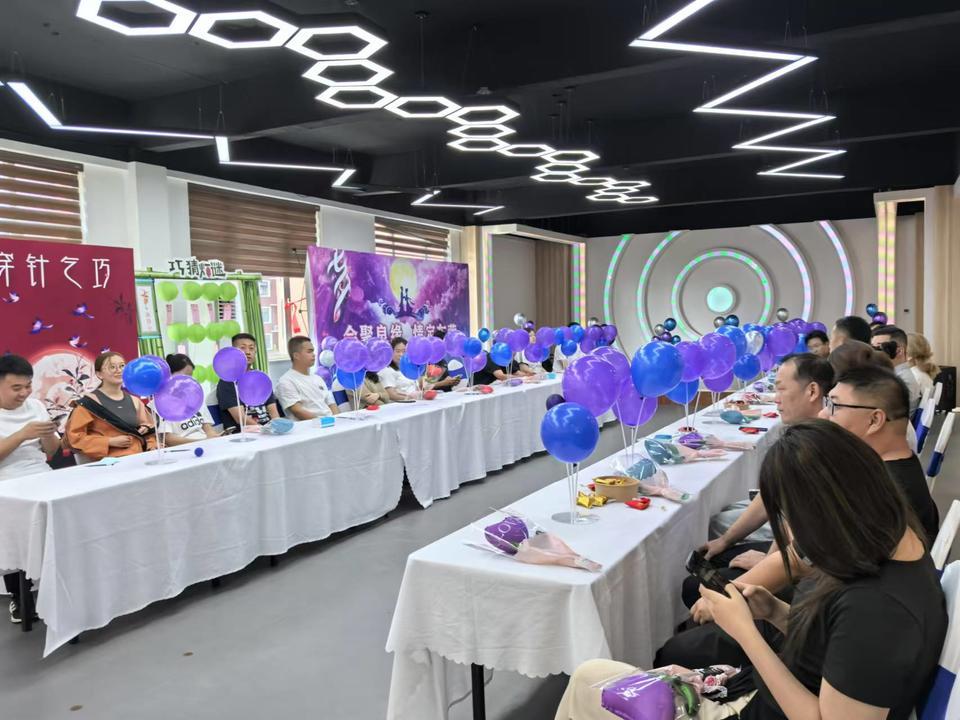 垦利区分会场活动在垦利区工人文化宫举办,全区在职单身职工60余人参加。会场设置了丰富多彩的互动游戏、才艺展示,大家在缘起绣球、团扇制作、幸运夺票、投壶问路等游戏环节中逐渐熟悉、互动交流,放下初见的拘谨与羞涩,沉浸在轻松愉快的氛围中。青年男女职工在茶歇休闲区品尝茶点及饮品互留联系方式,7对有缘人现场牵手。