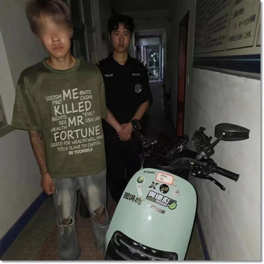 两人一直行驶至舜师步行街一奶茶店处才停下来,民警上前将两人查获。