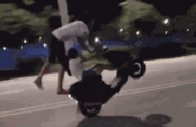 骑着电摩飙车、炸街、炫技