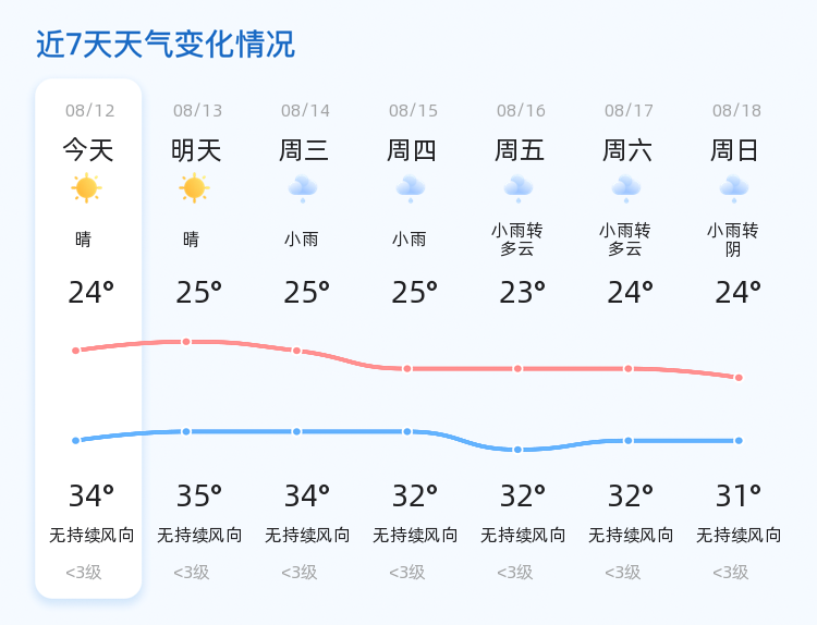 展望未来三天,潍坊的天气将逐渐发生变化。周三和周四,潍坊将迎来小雨天气,虽然雨势不大,但气温将有所回落,最高气温维持在32℃至34℃之间,最低气温稳定在25℃左右。周五至周日,天气将逐渐转好,以多云和小雨交替为主,气温也将保持在较为舒适的范围内。在此期间,市民朋友们需关注天气变化,合理安排出行计划,特别是雨天出行时需注意交通安全。