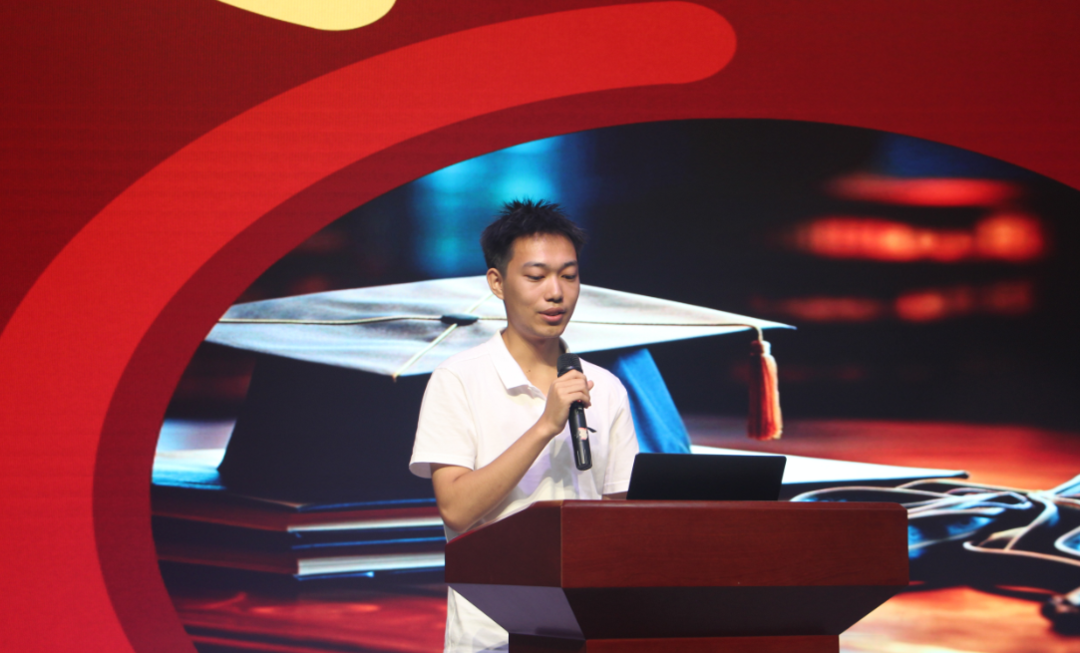 蔡沅钊则从学习状态、学习方法、应试心态、应试技巧四个方面展开演讲。他谈到,良好的学习状态是高效学习的基础,要保持专注和积极的态度。在学习方法上,强调要找到适合自己的方式,比如制定合理的学习计划、善于总结归纳。应试心态方面,他提醒大家要保持平和,不过分紧张焦虑。应试技巧上,要注重答题规范和时间管理。
