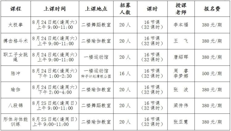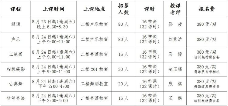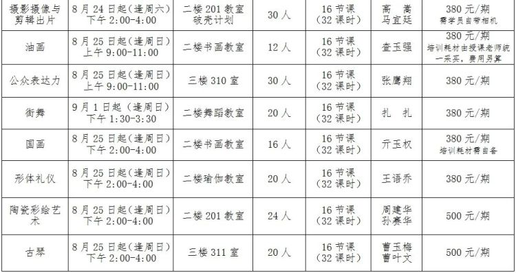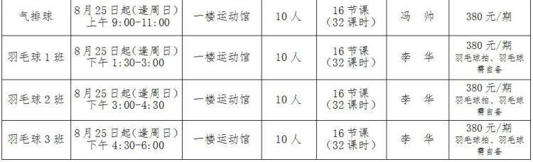 1.秋季班设置33个班次,教学周期为8月份至12月份。班次分为10次课、16次课。每次课程2个课时,时长90-120分钟。