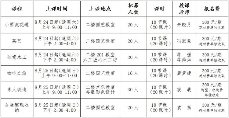 课程所用鲜花等耗材另算,费用为300元/人/期,开课前交付给授课老师。
