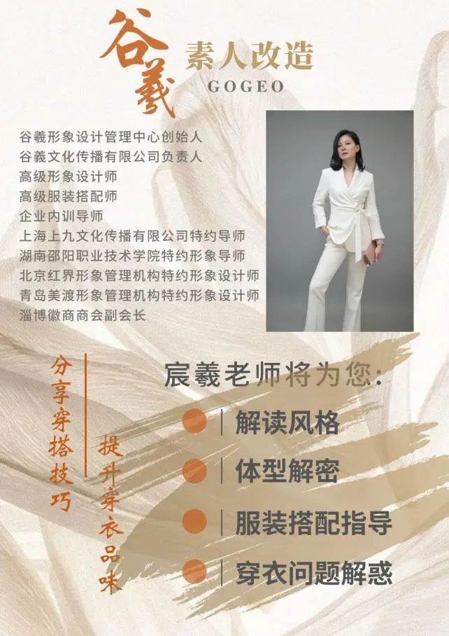 课程结束后为每位学员进行一次造型改造,包括剪发、妆容、着装建议,费用为300元/人/次,开课前交付给授课老师。