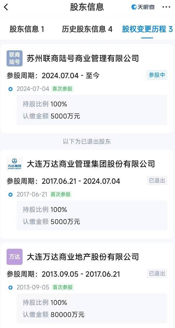 7月4日,东莞厚街万达广场投资有限公司发生工商变更,原全资股东大连万达商业管理集团股份有限公司退出,变更为苏州联商陆号商业管理有限公司。同时,高管人员亦发生变更,法定代表人由吴华变更为牟舟。