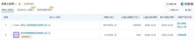 股权穿透信息显示,苏州联商陆号背后的间接控股股东为丽水联融壹号股权投资合伙企业(有限合伙),苏州新联管理咨询有限公司和阳光人寿保险股份有限公司为上述合伙的出资人,股权占比为0.1815%、99.8185%。