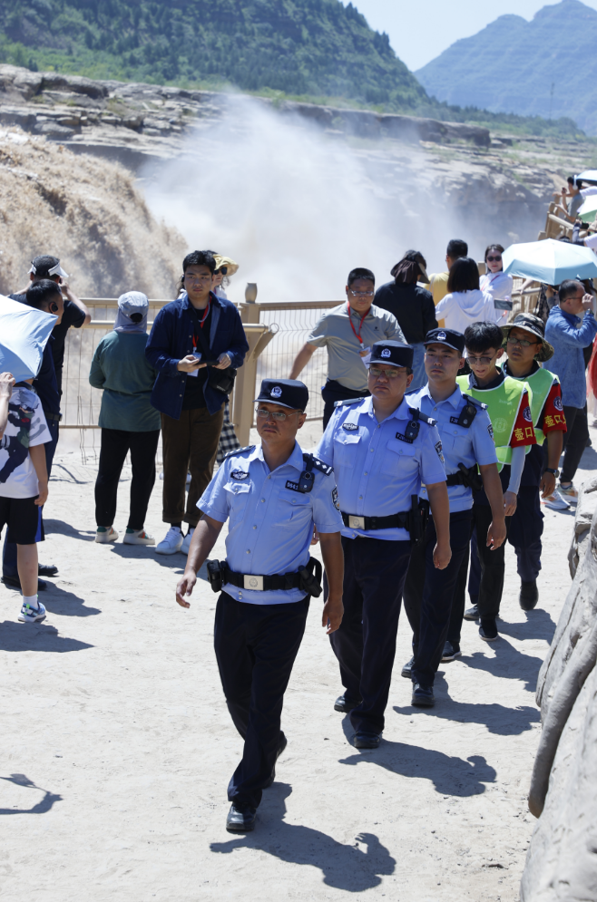 立足于壶口景区的实际,壶口派出所在景区设立由民警和景区安保人员组成的共11人的“义警”队,开展巡逻防控、矛盾纠纷调处、处理游客求助等,去年以来,为游客找回遗失手机、行李箱等物品23件,处理游客纠纷20起。今年以来,及时现场调处矛盾纠纷7起,查处交通违法4起,为游客找回遗失手机5部、轮椅1个、行李箱2个。在此基础上,“义警”队联合景区开展消防、处突、救援等演练,去年以来,景区未发生一起重大案事件。