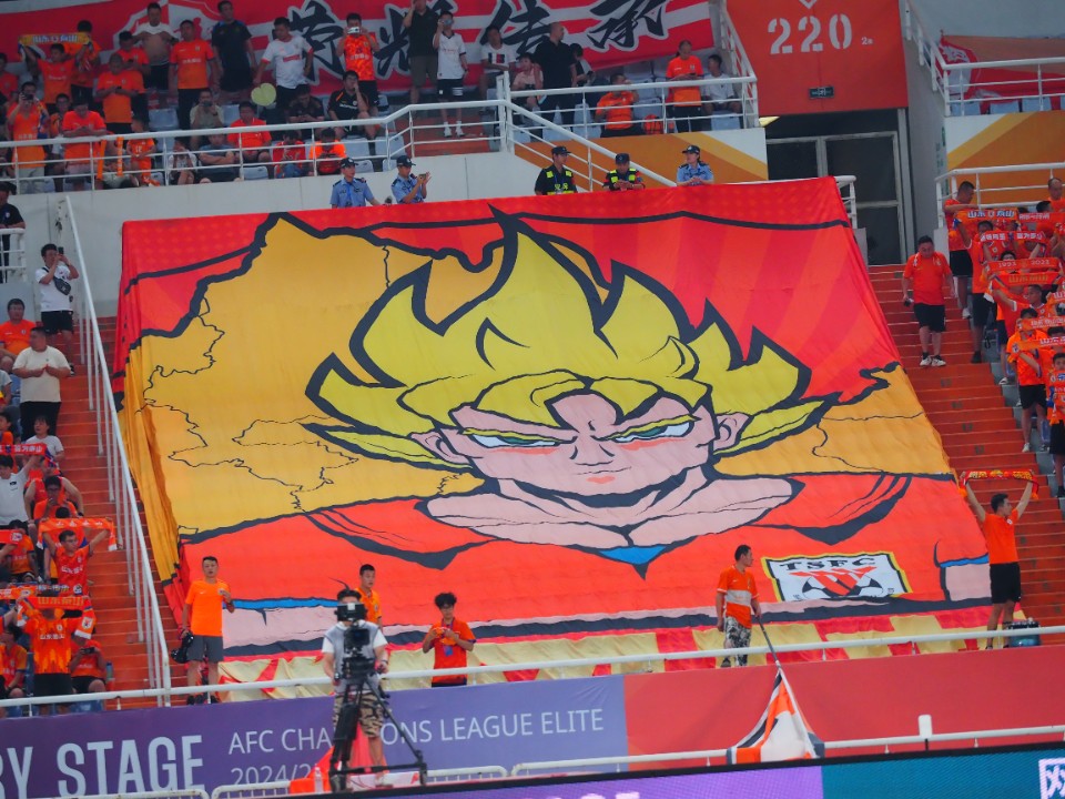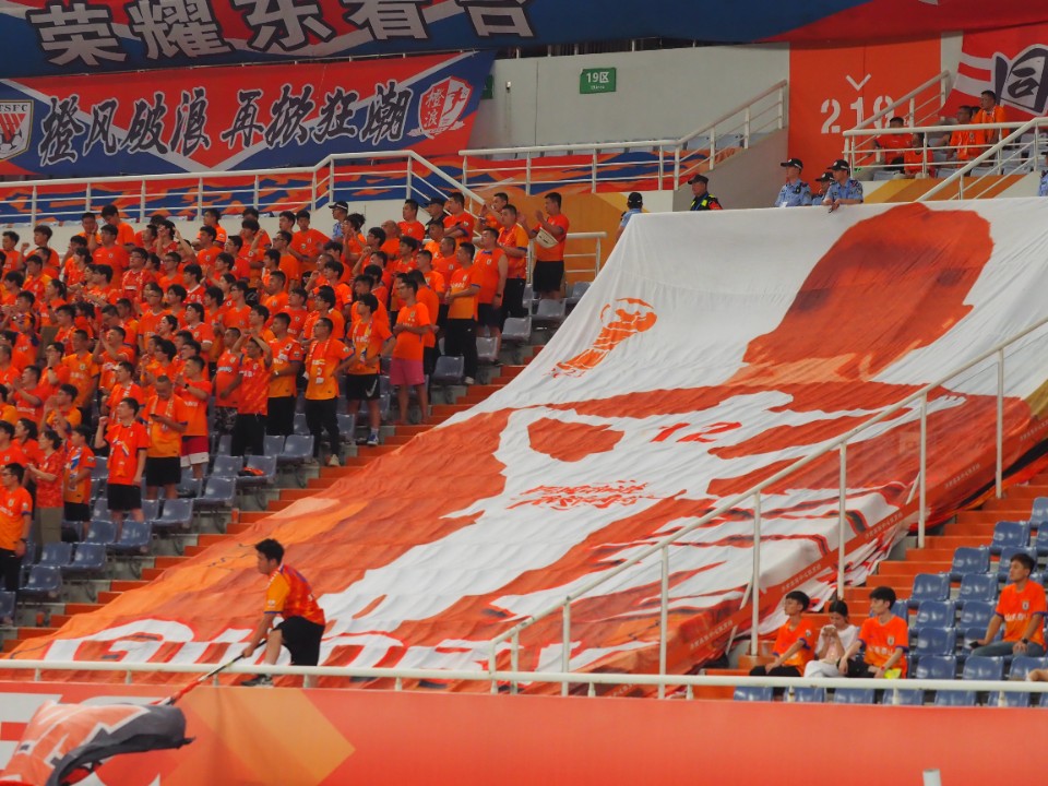 山东泰山队球迷打出第十二人tifo。