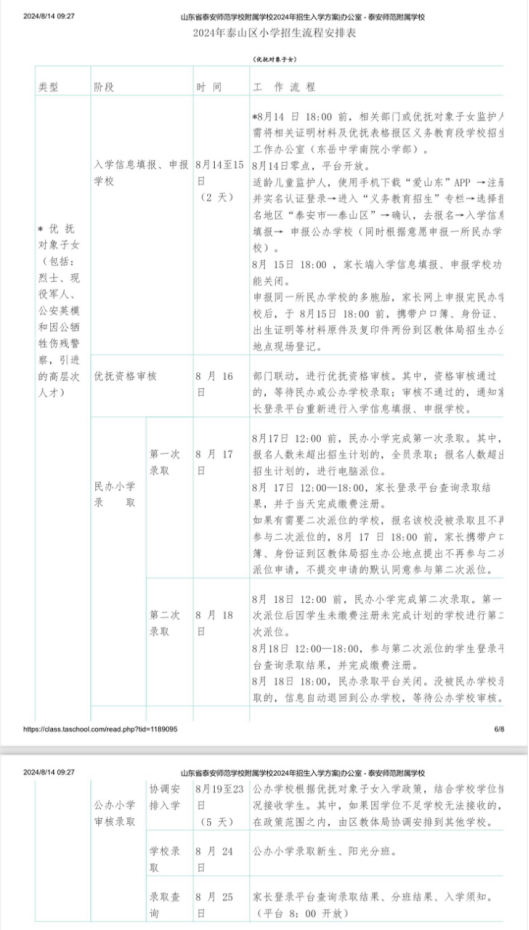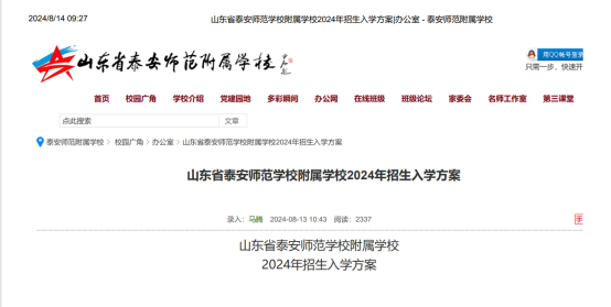 8月13日,山东省泰安师范学校附属学校发布2024年招生入学方案: