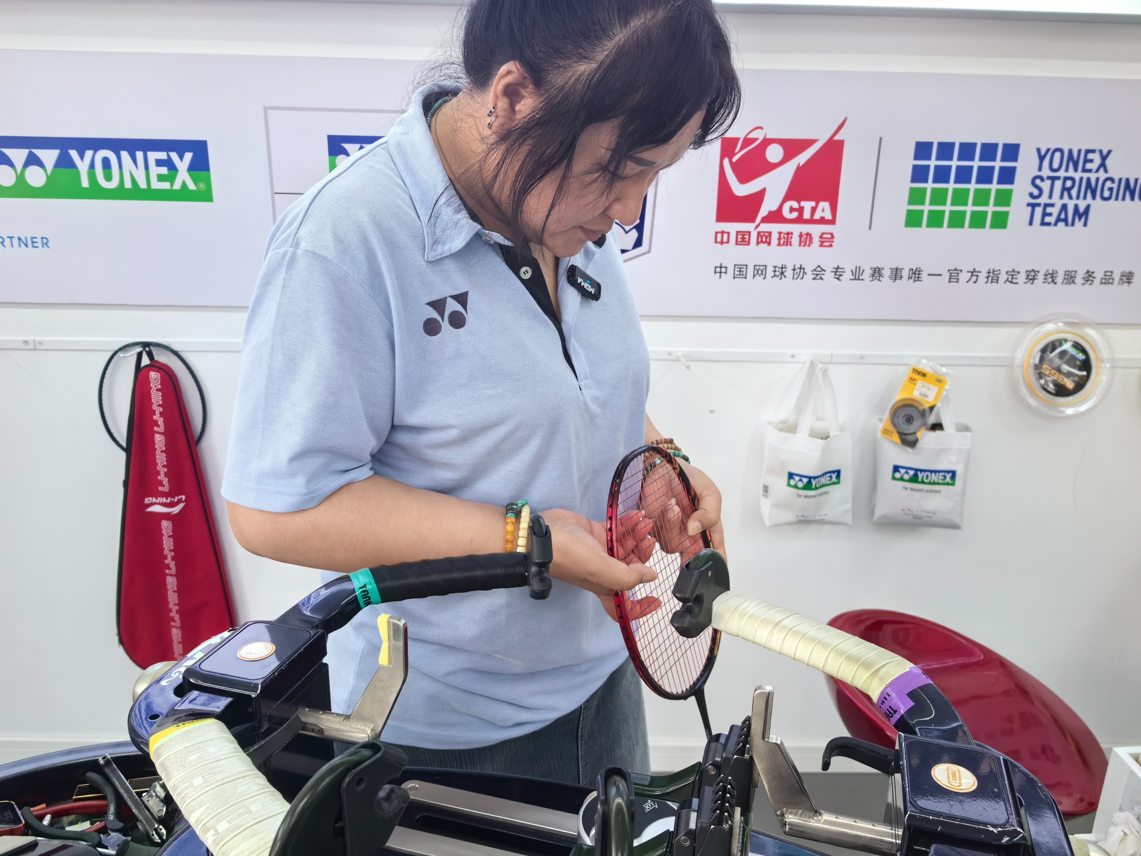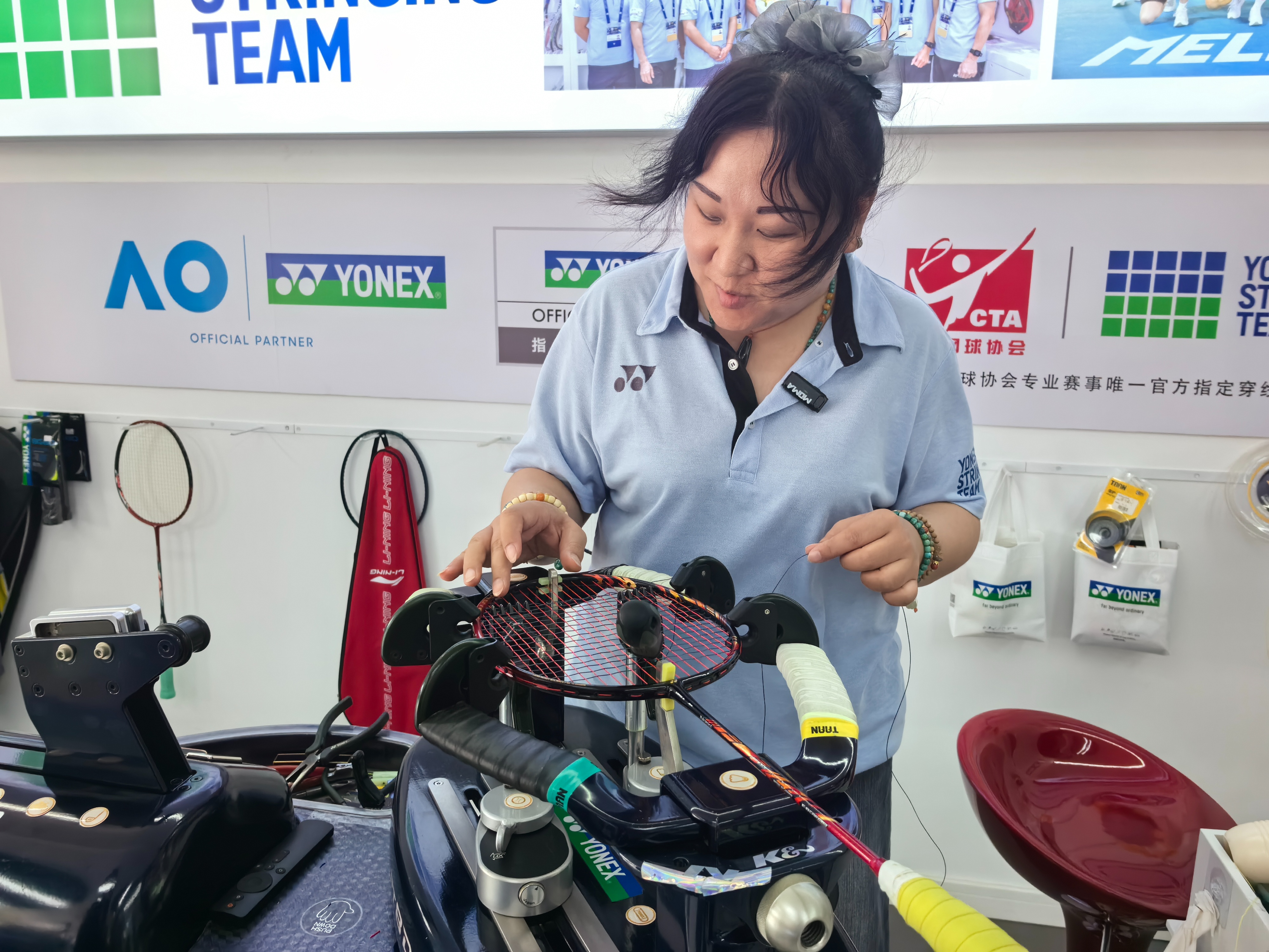 在位于山东省体育中心的冠华体育门店,金苗已经干了11个年头,目前她已经是尤尼克斯认证S2穿线师,可服务国内重大羽毛球赛事。