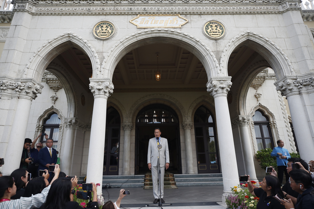 8月14日,曼谷,赛塔在泰国宪法法院裁定其违宪并即日解职后出席新闻发布会。图源:IC PHOTO