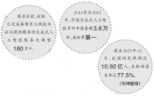 世界知识产权组织发布的报告显示,2014年至2023年,中国生成式人工智能专利申请量超3.8万件,居世界第一。