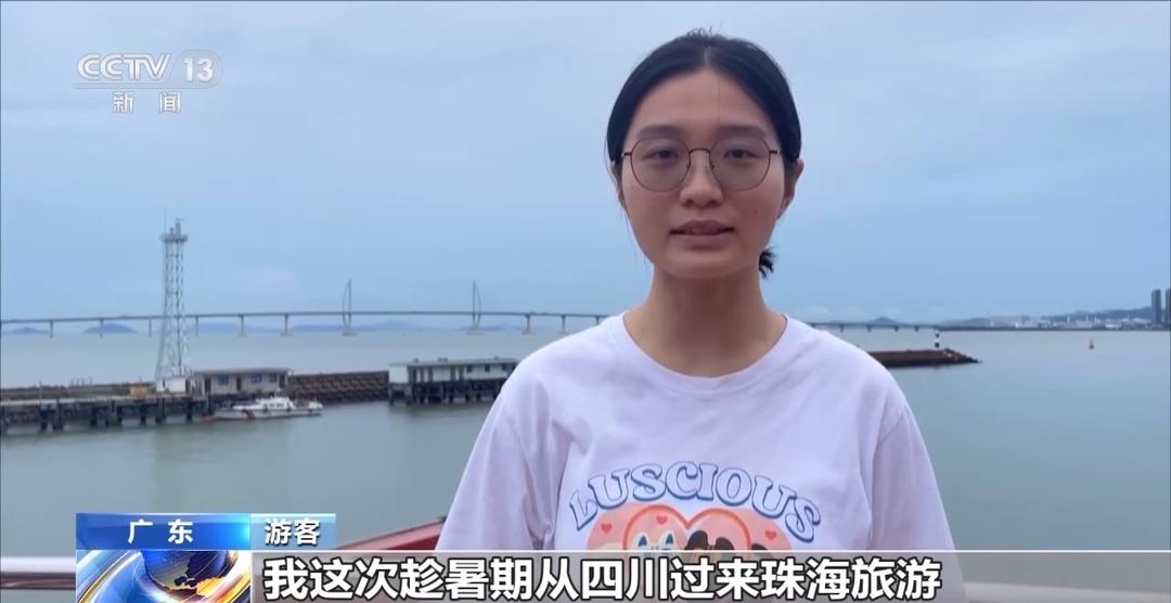 游客:我这次趁暑期从四川过来珠海旅游,来见证一下我们国家的港珠澳大桥工程,欣赏一下海上美丽的风景,玩得很开心。