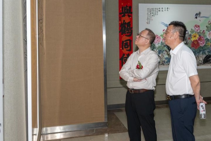 8月18日上午10时,“游于艺”怀馥诗书画印作品巡展(济南)在山东省文化馆隆重开幕,参见开幕式的主要领导嘉宾有,全国总工会原副主席、书记处书记徐锡澄,山东省委原常委、秘书长雷建国,以及在济部分将军,齐鲁文化传承发展促进会常务副会长鞠洪仑,民建中央画院院长 周鸣秋,山东省文化馆馆长、山东省非物质文化遗产保护中心主任 赵新天,本次展览的策展人、青年书法家刘绍海,齐鲁文化传承发展促进会、香港卫视总台国际书画院、济南文物、保护收藏协会、山东省乐龄书画院书画家及各界观众等200余人出席开幕式。现场京剧名家演唱《牡丹亭》等精彩节目。
