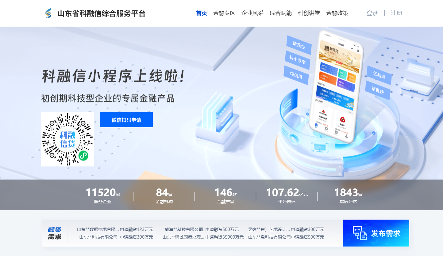 同时,聚焦科技型企业“融资难、融资贵”的问题,山东出台科技财政金融协同服务企业创新发展20条措施的配套细则,完善科融信平台评价模型功能,不断扩大平台金融机构和企业的覆盖面。截至目前,科融信平台已入驻科技型企业1.1余万家、金融机构80余家,累计为1900多家企业提供贷款授信107.62亿元,帮助627家企业获得实际融资支持超53亿元。