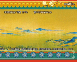 作为北宋山水画的代表作,《千里江山图》曾以多种形式被带到观众面前,如春晚舞蹈《只此青绿》等。刮刮乐“千里江山图”则采用金碧辉煌的宫殿、色彩斑斓的琉璃为背景,用长卷形式完整地呈现作品,票面华彩炫目,美轮美奂。