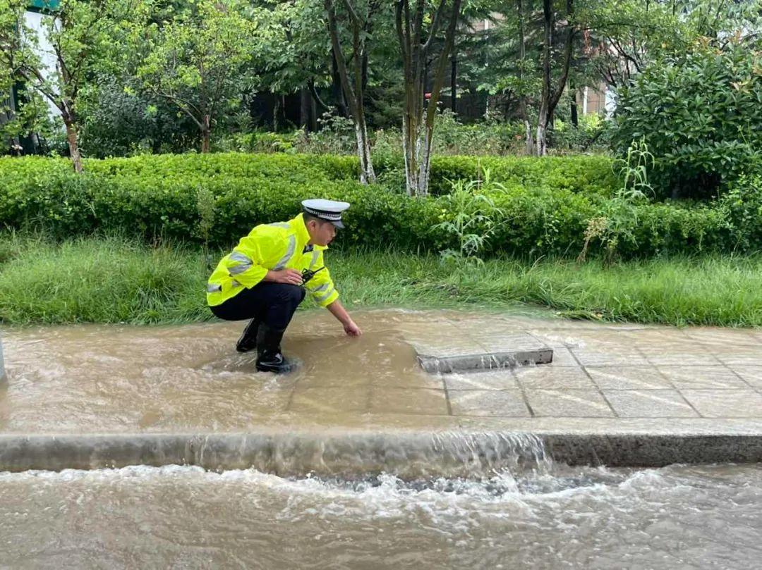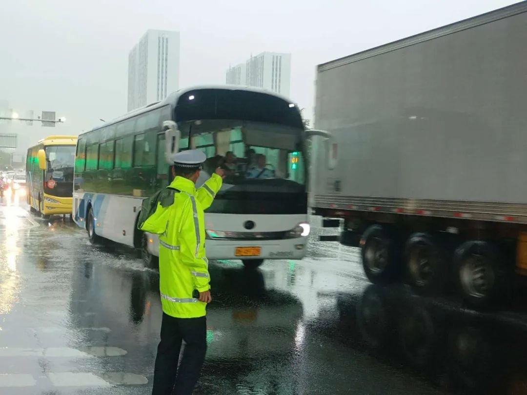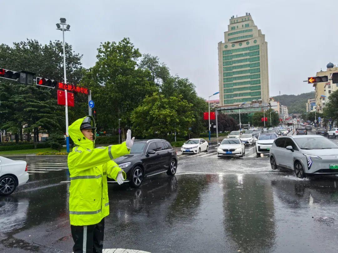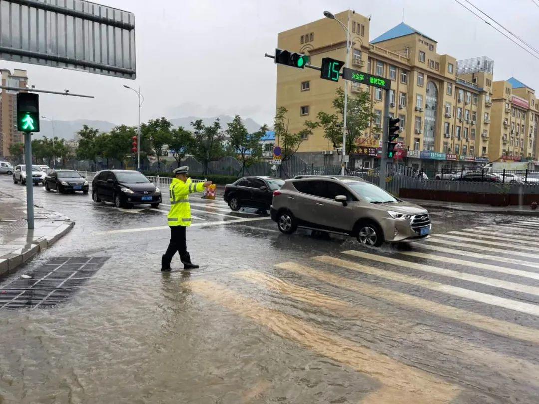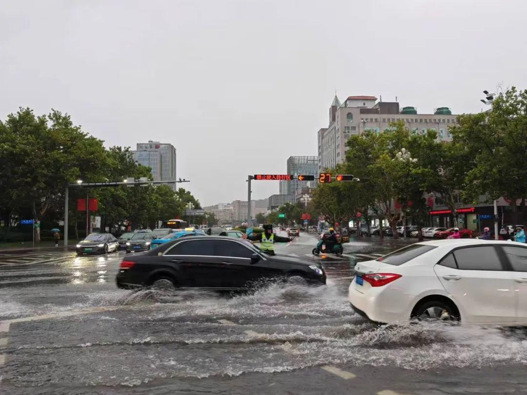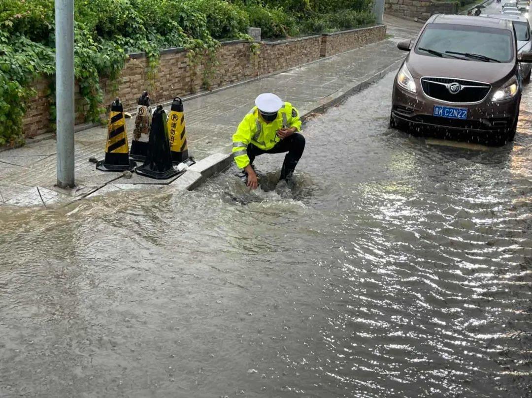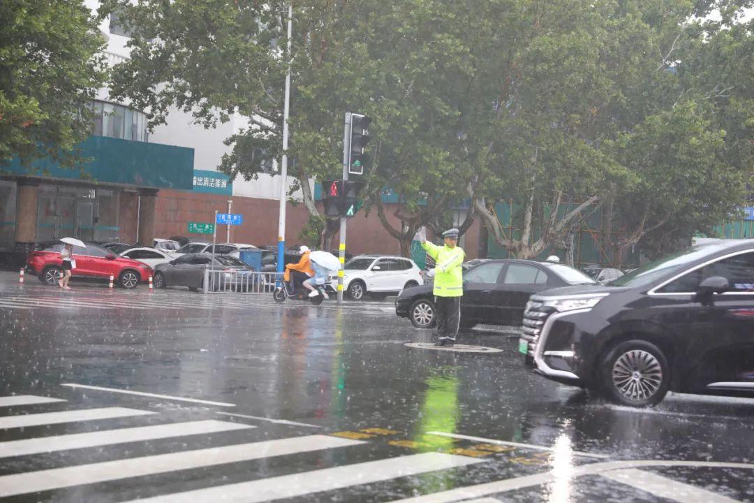 在暴雨的威海街头,随处可见的“荧光黄”让人安心