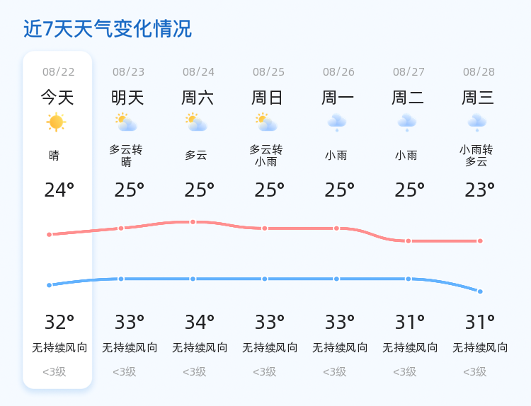 未来三天,泰安天气趋势以多云为主,气温逐步升高。周六和周日白天最高气温将达到34°C,夜间最低气温维持在25°C左右,风力微弱。周日晚间至周一,泰安将迎来小雨天气,市民需关注天气变化,及时做好防雨准备。周二和周三,小雨天气持续,但气温有所回落,最低气温降至23°C,最高气温在31°C左右,市民出行需注意携带雨具,以防不时之需。