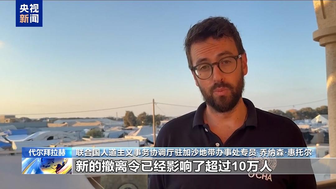 联合国人道主义事务协调厅驻加沙地带办事处专员 乔纳森·惠托尔:在过去几天里,新的撤离令已经影响了超过10万人。民众从汗尤尼斯和代尔拜拉赫地区被赶出去,带着所剩无几的财产奔波流浪。