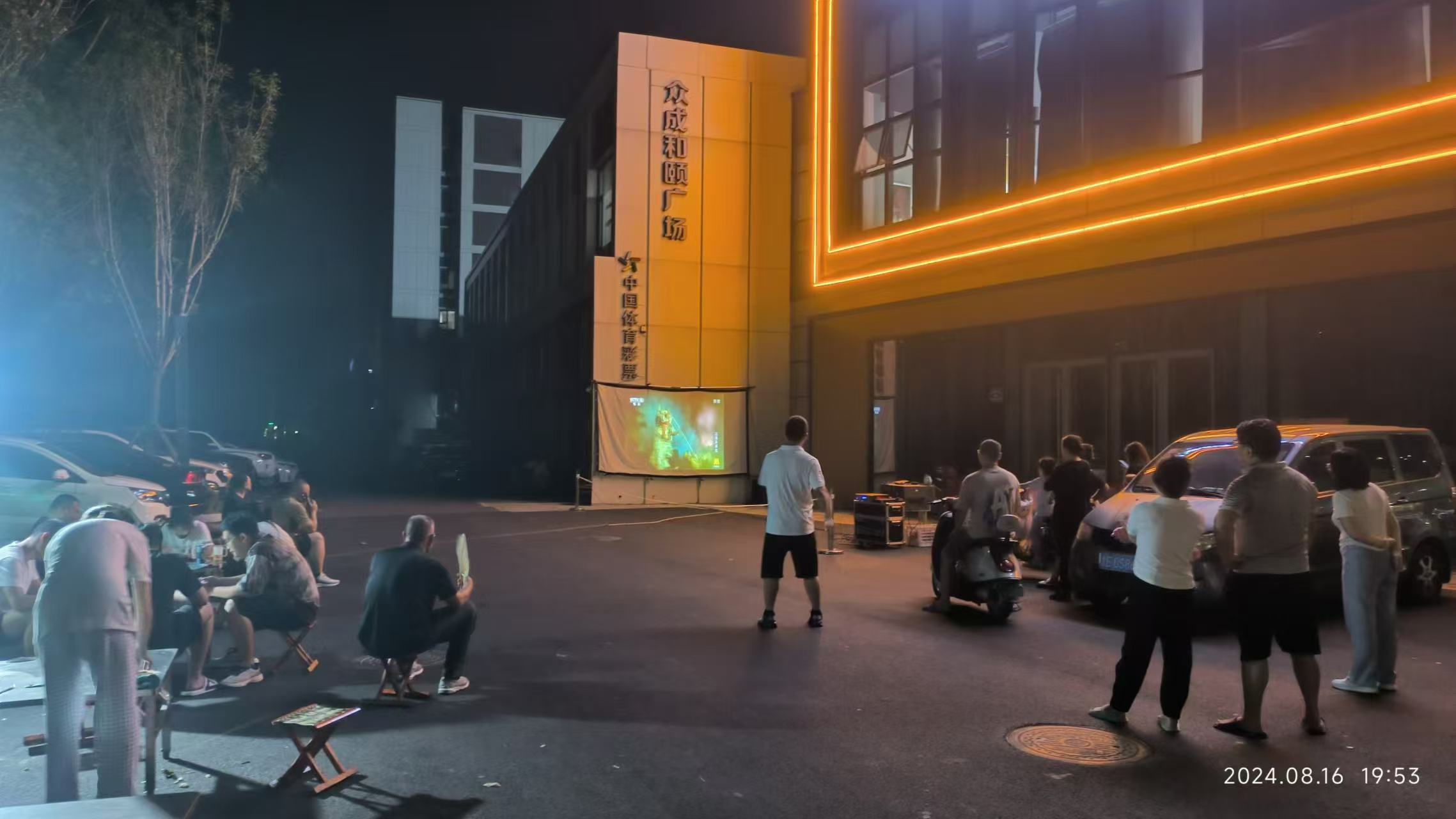8月16日,本报携手东营骏佳生活服务有限公司,在东营经济技术开发区胜利街道和园社区开展“光影脉动·强国复兴有我”国防教育红色影展活动。在和园小区商业街播放露天电影及《爱国主义教育法》宣传片。