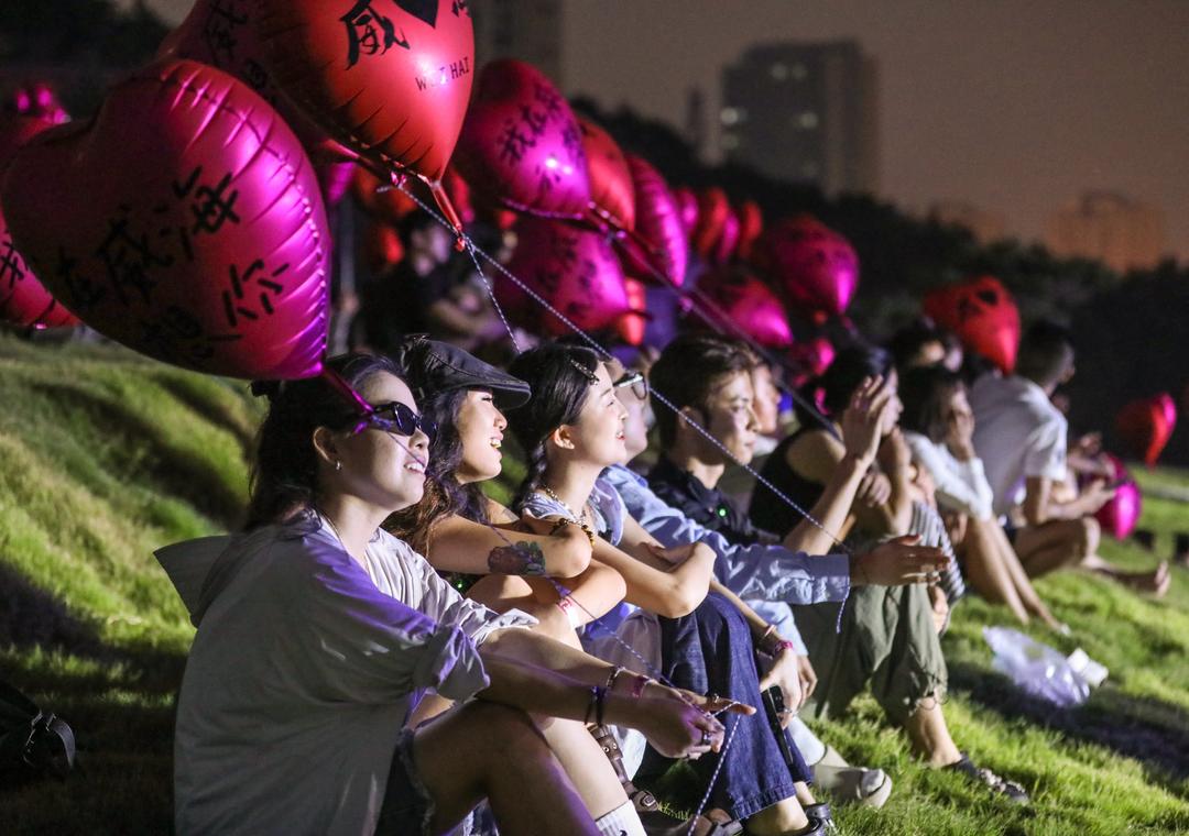 音乐狂欢过后,迎来了全场最浪漫、最震撼的时刻。舞台西侧,星星点点的花火连成一片,半空中挥洒下来,在流光溢彩间,众人对着灯火许愿,一起放飞手中象征着梦想的气球。