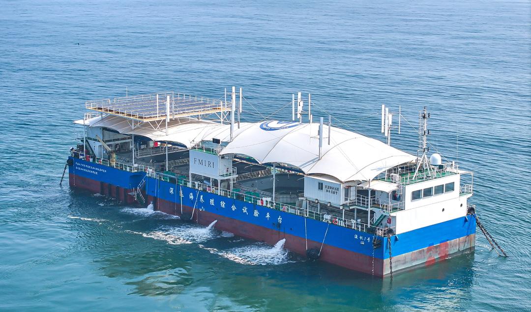 全国首座深远海封闭式综合试验平台,在荣成海域投入运营