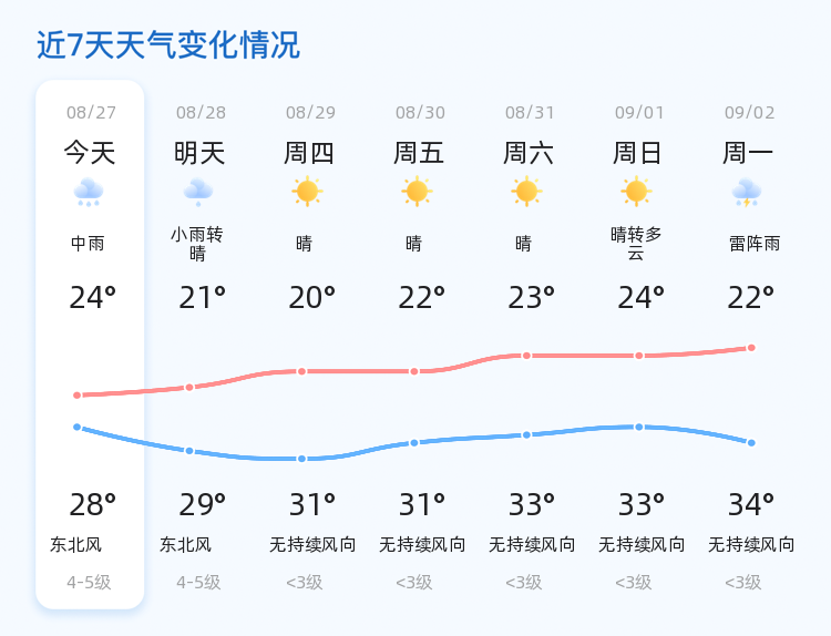 明日即8月28日,淄博天气预报显示将由小雨逐渐转为晴天,与今日相比,降雨明显减弱,但风力将有所增强,预计达到4-5级东北风。气温方面,最低温略有下降,为21℃,而最高温则小幅回升至29℃,市民朋友们需根据天气变化及时调整着装,以防感冒。