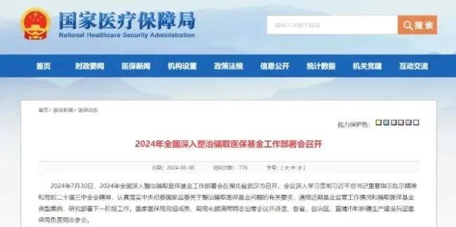 据国家医保局公众号,近日2024年全国深入整治骗取医保基金工作部署会在湖北省武汉市召开。