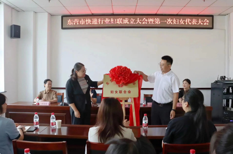 市邮政管理局党组成员孙永政,市妇联挂职副主席孟令钟,共同为东营市快递行业妇联揭牌。