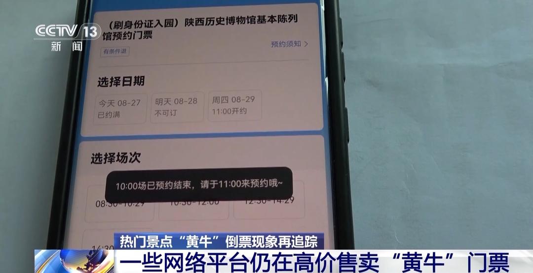 前不久,记者报道了北京暑期旅游旺季免费景点预约难、“黄牛”抢票高价牟利的现象。节目播出后,各地迅速行动,严厉打击“黄牛”利用抢票软件抢票牟利的行为。然而,记者注意到,在一些网络平台,仍有不少“黄牛”在高价售卖热门博物馆的门票。