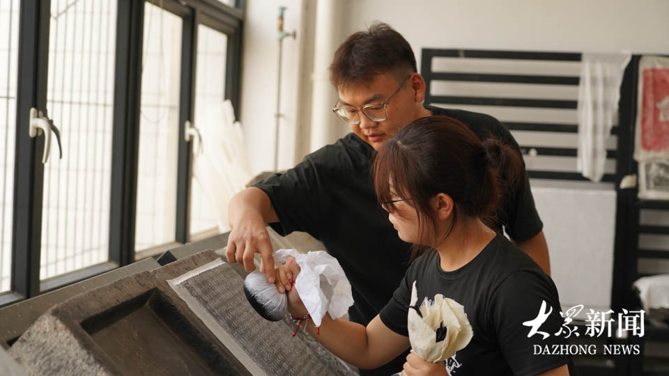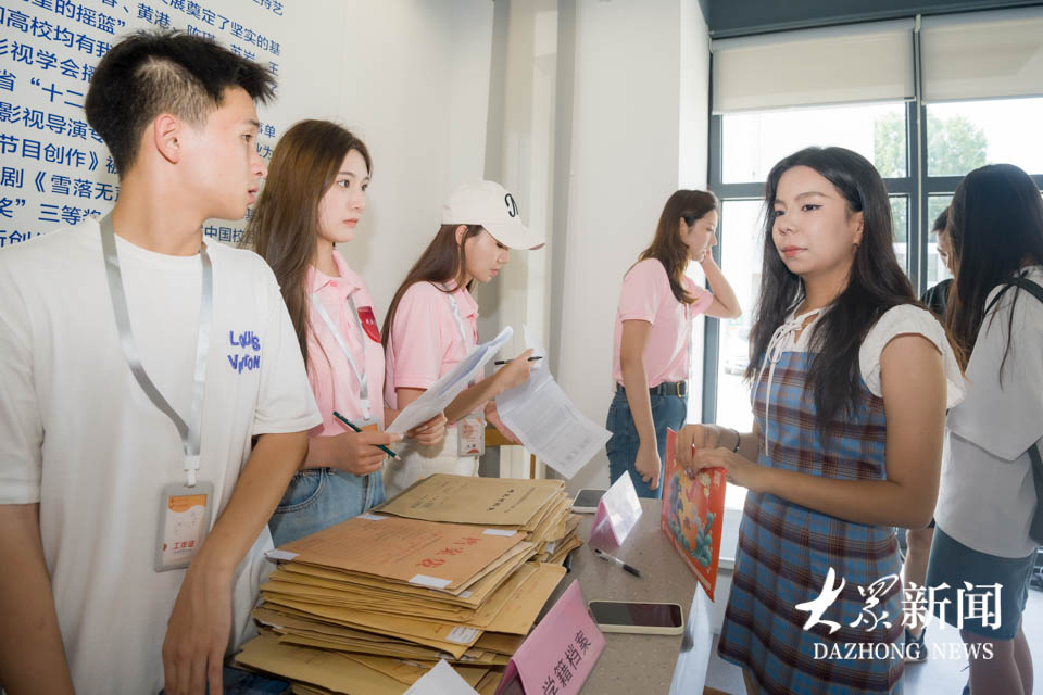 在艺术管理学院,学长亲自为非物质文化遗产保护这一新专业的新生讲解专业相关知识。(该图片由山东艺术学院提供)