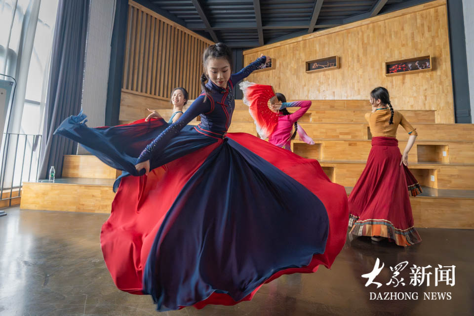 舞蹈学院2024级的维吾尔族、傣族、彝族新生与来自蒙古族、藏族、傣族的学姐同台共舞。
