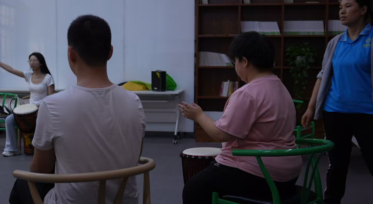 第一次我怀着忐忑的心走进教室,但孩子们的热情缓解了我的情绪。他们看着我既好奇又激动,有个孩子甚至过来牵住了我的手。我在教室陪伴孩子们一同听课,有个孩子一直在拍打桌子,我刚想上前安慰他,老师走来告诉我说可以允许他们发泄情绪。那一刻我很触动,虽然他们有点特殊,但他们的老师会一直卖力的讲课,会温柔的叫他们的名字,我们一起度过了欢快的音乐课,孩子们乐观积极的态度深深感染着我。我记得我抱住那个孩子时,他的小手把我搂的很紧,像是在说“大姐姐多陪我玩一会儿”,当我们要离开时,我从他们的眼睛里读出了不舍,我在难以改变他们身体的封印时,能做的就是多来陪伴他们。小孩子的快乐很简单,或许你陪他玩会儿,他就能开心很长一阵子。