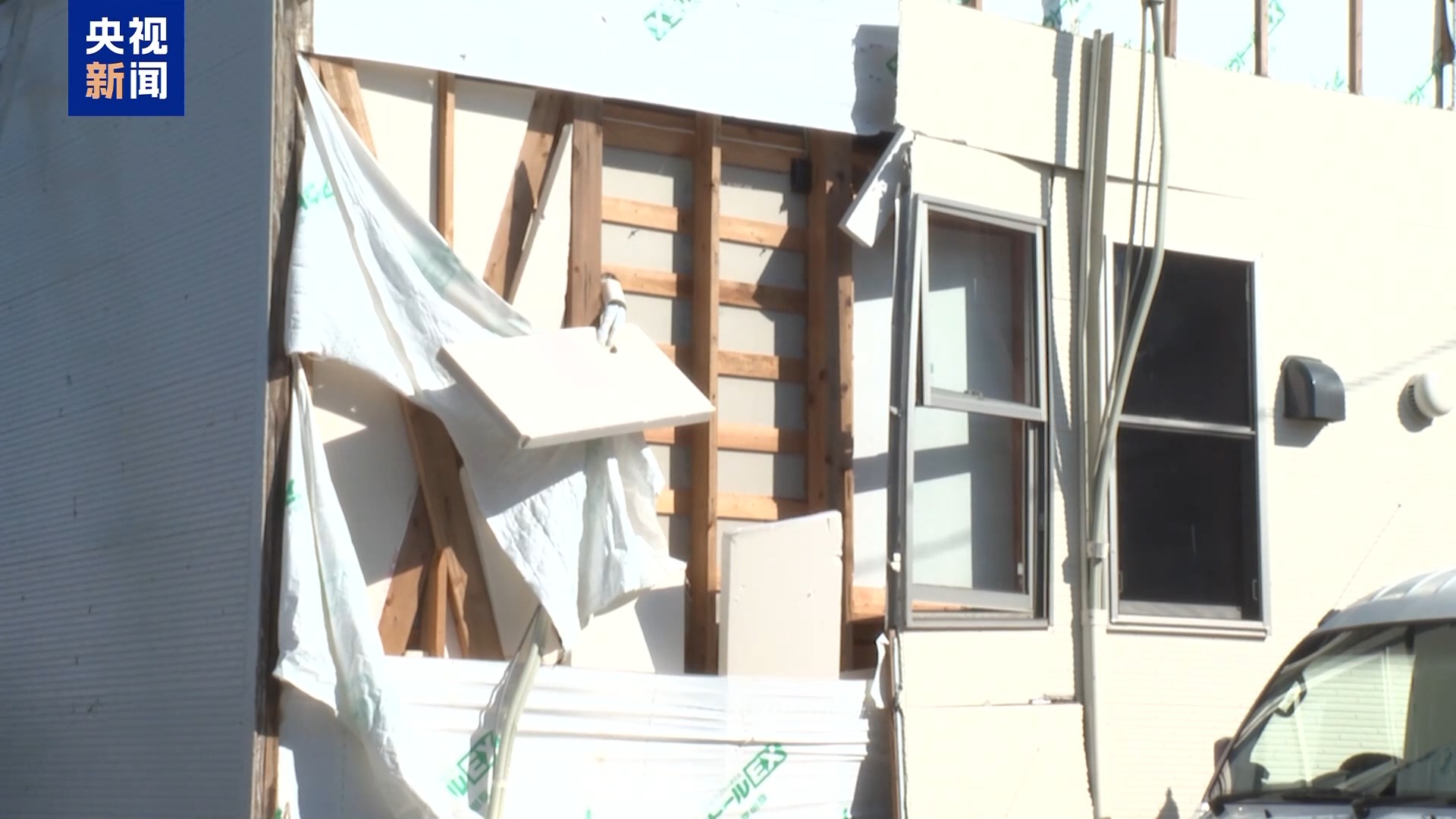 总台记者 刘耀鸿:这里是日本九州岛东南部的宫崎县宫崎市,也是此次受灾最为严重的地区之一,现在在我目光所及之处的房屋几乎都有着不同程度的受损。比如说,在我身后的这栋白色建筑,我们可以看到它的整个房顶已经被完全掀翻,横梁裸露在外,整个房屋处于半裸露的状态。而在旁边的这栋建筑,另一侧的房顶也是已经被完全掀翻,目前盖上了蓝色的遮雨布,来进行暂时的遮风避雨。