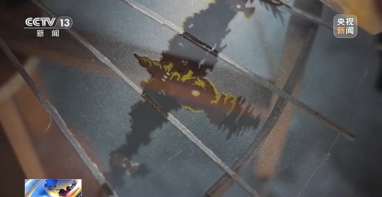 国家级非物质文化遗产伞制作技艺(西湖绸伞)国家级代表性传承人 宋志明:刷的过程当中有讲究,手势的轻重,融合什么颜色,比方说这里是个亮点,这里刷得深点,这里让颜料自然地飘过去,这里就不刷了,点到为止了。像这里有个月亮,它的光是从这里射下来的,所以我这里就让颜料自然地飘过去,树荫这里要加强,这里要刷深。