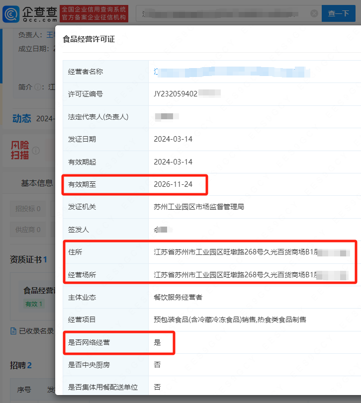 - 特别注意查看商家是否有合法的营业执照。同时,确认食品经营许可证的有效期和许可范围,是否涵盖网络经营。