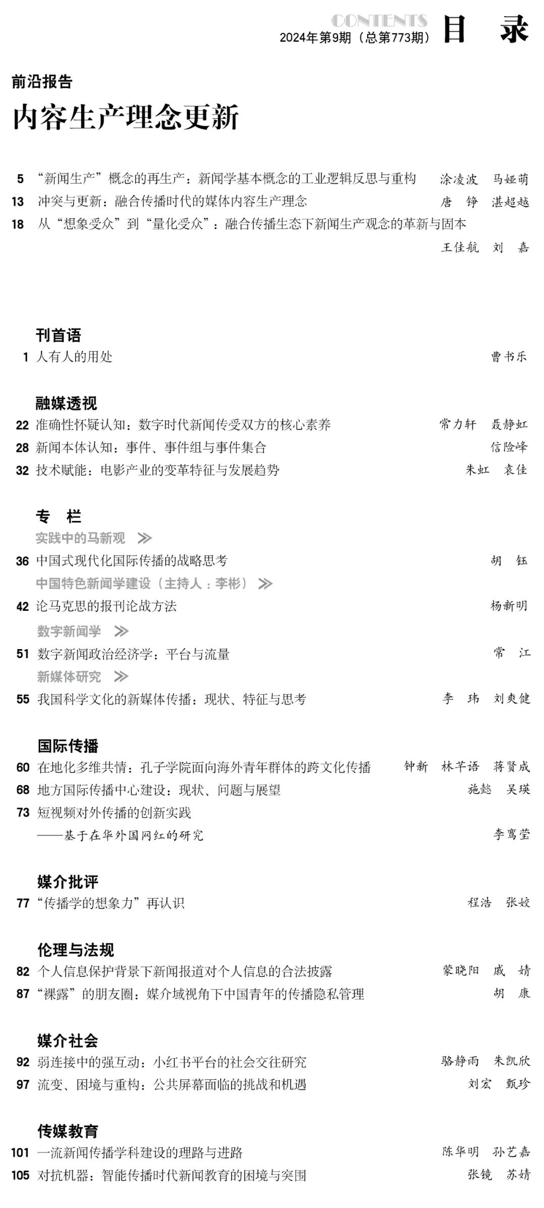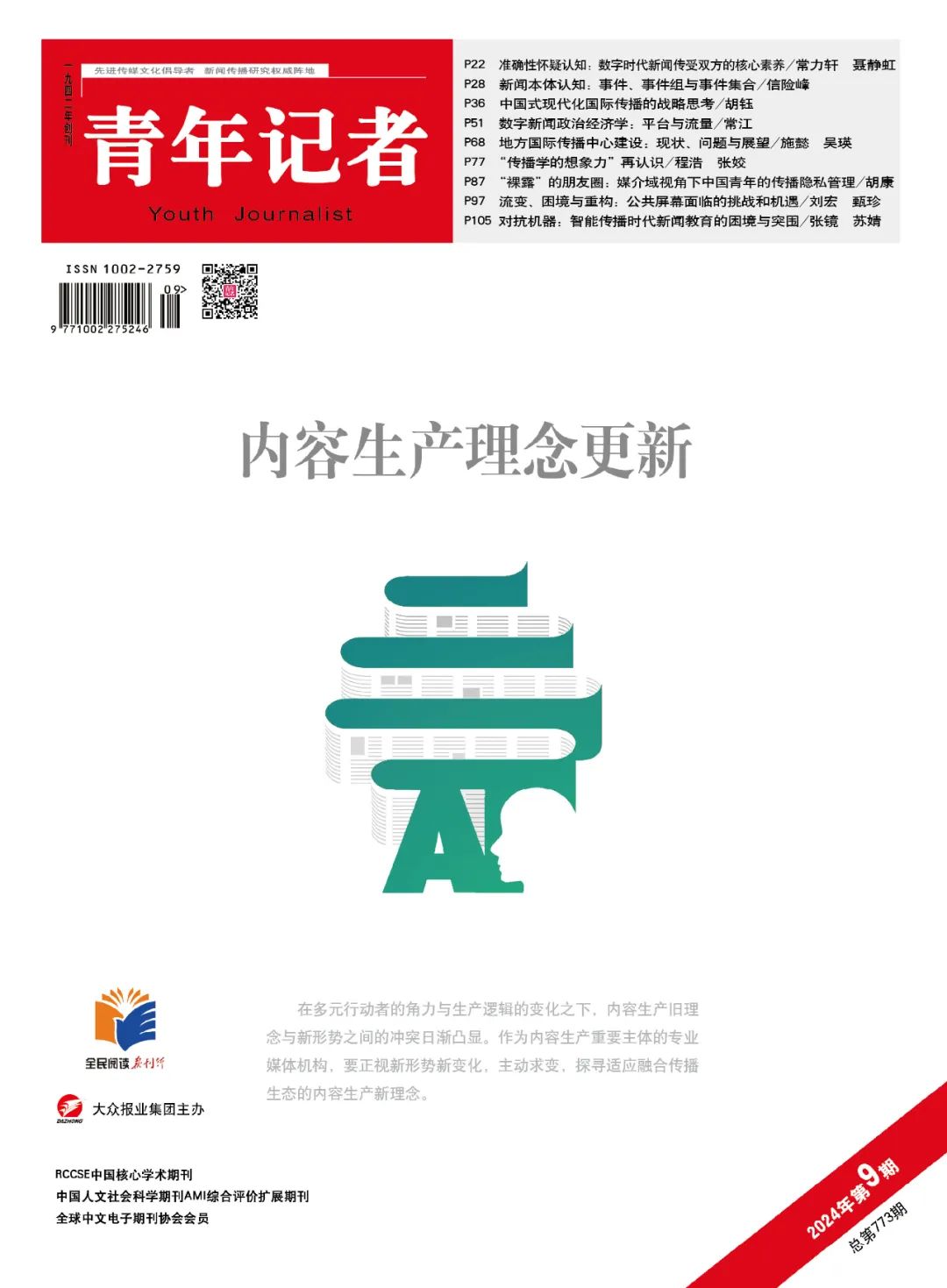 《青年记者》2024年第9期目录新鲜出炉~
