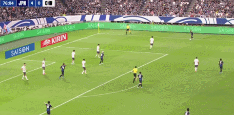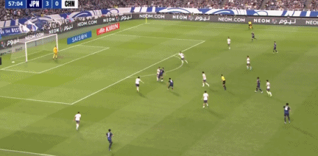 比赛第87分钟,日本队伊东纯也送出传中,前田大然头球得手,再次攻破中国队球门,国足6-0落后日本队。