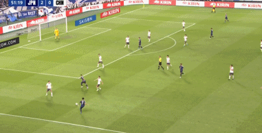 比赛第58分钟,南野拓实梅开二度,杀入中国队禁区,将比分扩大到4比0。